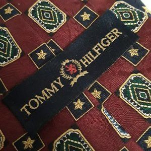 TOMMY HILFIGER - 100% SILK NECKTIE - MAROON WITH NAVY BLUE ACCENTS