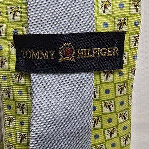 TOMMY HILFIGER 100% SILK TIE, MENS, APPLE GREEN WITH PALM TREES EUC