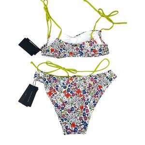 TOMMY HILFIGER 2PC Floral Bikini Top & High Leg Cheeky Swim Bikini Bottom Large