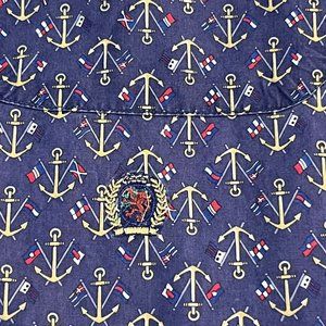 TOMMY HILFIGER ALL OVER PRINT Large Anchor Sailing Nautical Shirt VTG 90’s