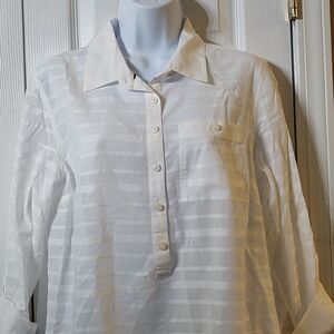 TOMMY HILFIGER BOYFRIEND FIT WHITE ON WHITE BUTTON DOWN BLOUSE