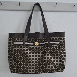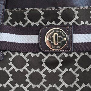TOMMY HILFIGER | Bag Purse Tan Brown Brocade Stripe TH Logo Handbag