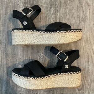 TOMMY HILFIGER Black Canvas Strappy Platform Espadrille Sandals