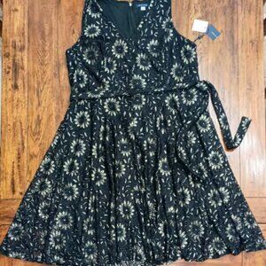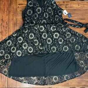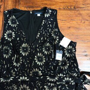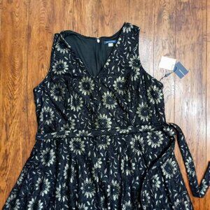 TOMMY HILFIGER Black Sleeveless Dress with Gold Floral Lace. Plus Size 18W
