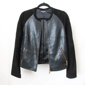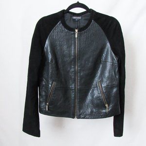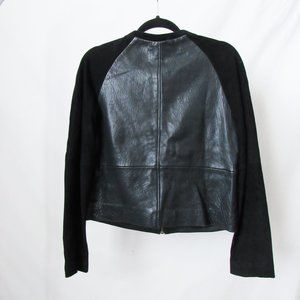 Sporty style with suede sleeves and soft leather body. Elevated and chic. Gold hardware. Quality made and looks expensive