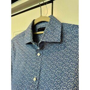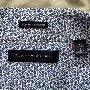 Tommy Hilfiger Blue and White Floral Long-Sleeve Button Down