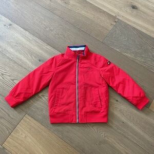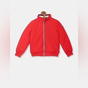 TOMMY HILFIGER Boys Red High Neck Zip-Up Solid Bomber Jacket Sz Small 6-7 NWT