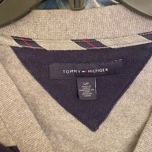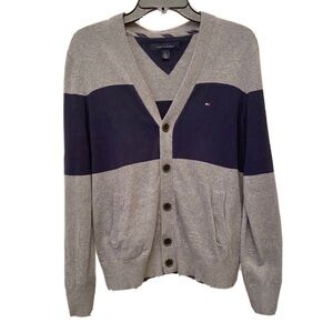 TOMMY HILFIGER Preowned Button Down Cardigan Logo Sweater. Nice-looking. Not new - Some wash fade, some piling. Armpit to armpit measures approx 19.5” wide. Base of back collar to hem measures approx 24.5” long.
