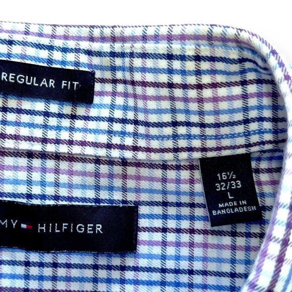 TOMMY HILFIGER Button Up Check Shirt Preppy Nautical Blue Purple 16 1/2 Large