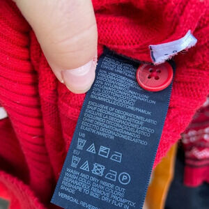 Pre owned. Excellent condition. I think it was washed once. Red cable knit sweater with button up turtle neck. WOMENS size large but I think it fits more like a medium. Perfect for the holidays and Valentine’s Day!