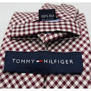 TOMMY HILFIGER CHECKERED BURGUNDY WHITE 100% SILK TIE