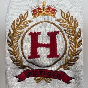 TOMMY HILFIGER Y2K cream, timeless , regal turtleneck sweater featuring an embroidered bold crest design and a classic style. Perfect blend of style and comfort. This beautiful sweater looks and feels brand new, in perfect condition. You’ll be sure to get compliments on this simply gorgeous sweater! Has a very generous pit to pit measurement of 21” ( could fit a medium) length is 26”. The large TH logo is everything, impeccable details ❤️