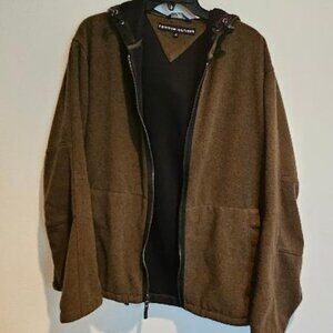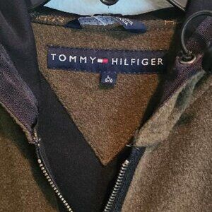 TOMMY HILFIGER Casual Hoodie. Size LARGE. Deep Olive Green Color (looks sort of brown in the pics, but it's really more olive green). Zipper closure with side pockets. 43% Polyester, 42% Acrylic & 15% Wool. Nicer than a typical hoodie... great with jeans.