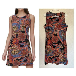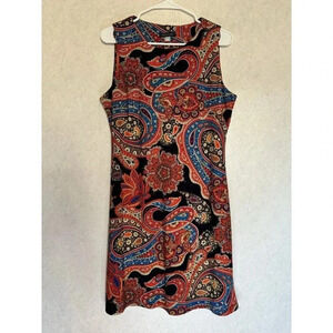 TOMMY HILFIGER Colorful Red Black Paisley Print Slinky Shift Dress Sz 10 Fairy