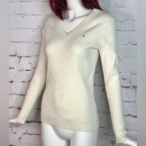TOMMY HILFIGER Cream Ivory Ribbed Knit V-Neck Long Sleeve Top Size Medium