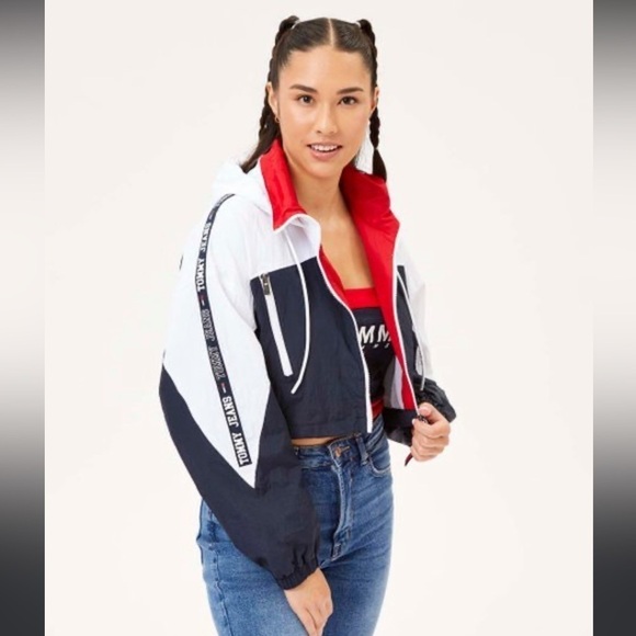TOMMY HILFIGER Cropped Colorblock Windbreaker Jacket 🇺🇸 RARE Color Combo 🔥 Sm