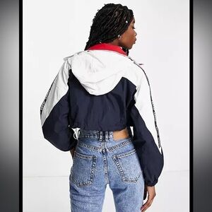 Super RARE color combo ✨ Retro-inspired crop windbreaker with built-in pockets and an adjustable draw-cord hem. Same style as pictured but the bottom half is red- can’t find any, anywhere in this color combination!! Get it here for a deal- brand new with tags and never worn.!