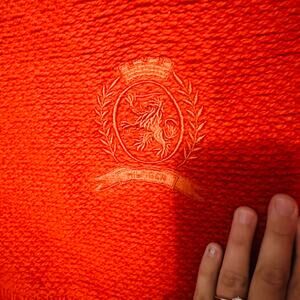 TOMMY HILFIGER Dark Orange Ribbed Knit V-Neck Logo Embroidered Sweater is a stylish and vibrant piece that adds a pop of color to your wardrobe. Made from ribbed knit fabric, this sweater offers both warmth and a comfortable fit. The dark orange hue is bold and eye-catching, making a strong fashion statement. The V-neck design enhances its modern look, while the logo embroidery adds a classic touch of brand identity.