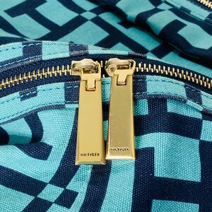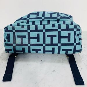 TOMMY HILFIGER Dome Backpack 17" Monogram Logo Navy Teal Canvas Preppy Bag VGUC