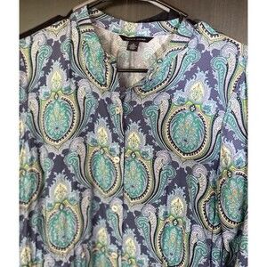 TOMMY HILFIGER Dress Women's SZ M Drawstring-Waist Shirt Multicolor 3/4 Sleeves