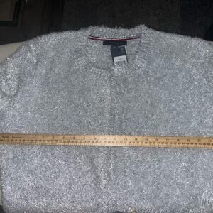 TOMMY HILFIGER FURY TINSEL METALLIC GRAY OPEN CARDIGAN SWEATER SIZE XL