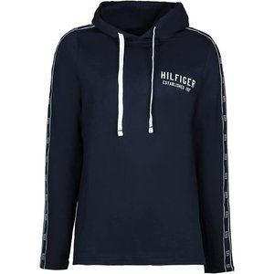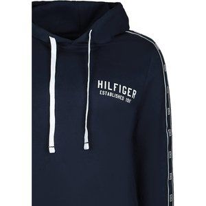 TOMMY HILFIGER French Terry Logo Side Tape Drawstring Hoodie Dark Navy Blue L