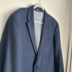 TOMMY HILFIGER Jacket Mens Sport Coat 100% Wool Navy Blue Double Vent Blazer Size 48L