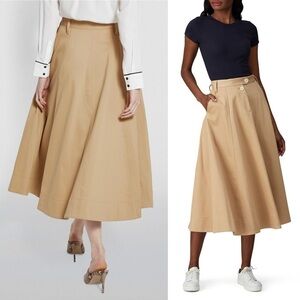 TOMMY HILFIGER Khaki Embroidered Crest Cotton Twill Pleated Chino Midi Skirt L