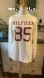 Hilfiger and 85 printed on the front in a faded/distressed look.
