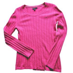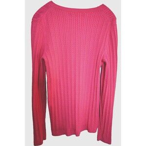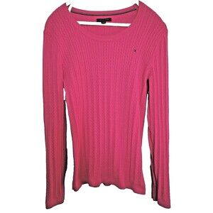TOMMY HILFIGER Logo Sweater L Cable Knit Pullover Pink Preppy Yacht Golf Tennis