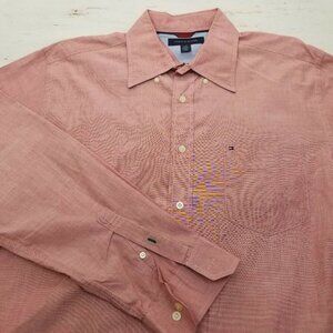 TOMMY HILFIGER MEN'S BUTTON DOWN LONG SLEEVE SHIRT RED LARGE