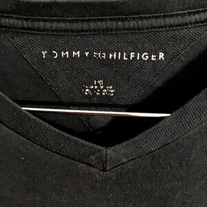Classic Tommy Hilfiger men's navy v-neck short sleeve t-shirt in size large. Made from premium cotton for maximum comfort and durability. Perfect for casual or sporty wear.