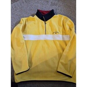 This Tommy Hilfiger Men's Vintage Quarter Zip Pullover Fleece in size 2XL is a classic and warm jacket perfect for the winter and fall seasons. Made with 100% polyester fleece, this jacket features a solid yellow color, a 1/4 zip closure, and a band collar. The mid-length jacket with a 90s theme and Tommy Hilfiger branding is ideal for casual occasions and can be machine washed for easy care. The 650 warmth weight and polyester lining ensure comfort, while the vintage style adds a touch of nostalgia to your wardrobe.