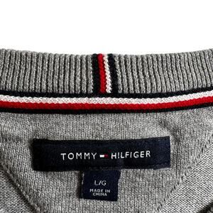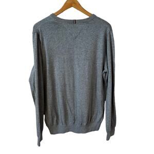 TOMMY HILFIGER Men's Cotton V-Neck Lightweight Logo Sweater Gray Large Classic