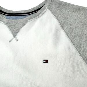TOMMY HILFIGER Men's Large White Gray Raglan Long Sleeves Pullover Sweatshirt