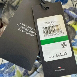 TOMMY HILFIGER Monstera Leaf 50+ SPF Bikini Bottom White and Blue Size L NWT