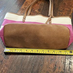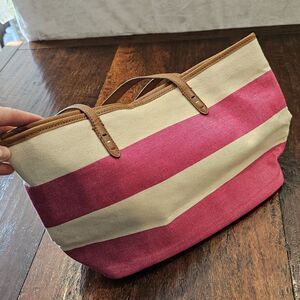 TOMMY HILFIGER Nautical Preppy Pink Striped Shoulder Bag Tote Canvas Logo Charm