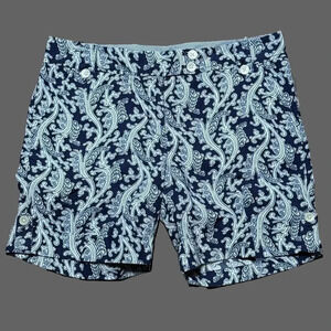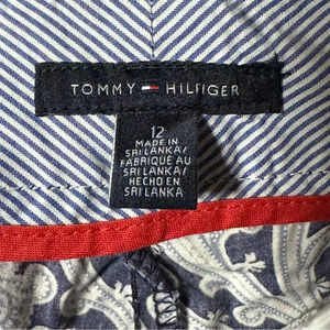 TOMMY HILFIGER Navy Blue and White Paisley Print Cuffed Shorts Size 12