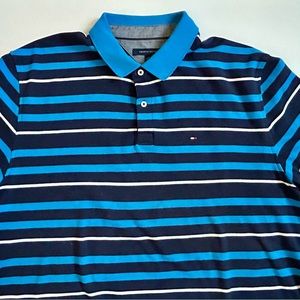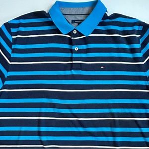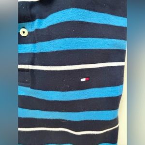 Very nice polo shirt by Tommy Hilfiger blue blue and white button front collar and great condition. See photos.