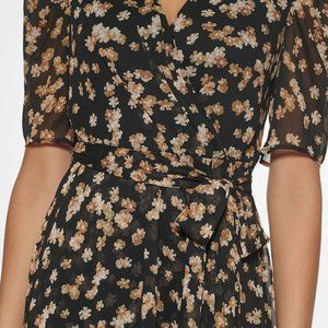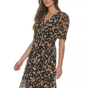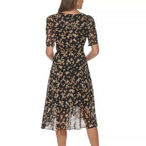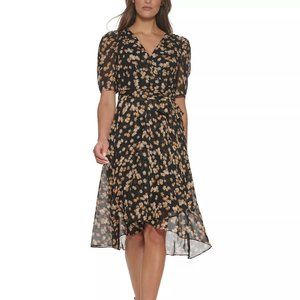 Elegant floral-print chiffon sets a pretty tone with this petite midi dress from Tommy Hilfiger. Surplice neckline; Midi silhouette Chiffon: Smooth, sheer woven fabric Lined Self-tie at waist; high-low hem Back zipper closure Falls below the knee to lower calf Shell: polyester; lining: polyester