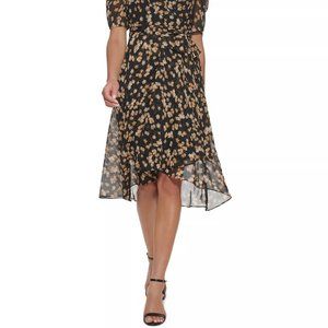 TOMMY HILFIGER Petite Floral-Print Chiffon Midi Dress Sand Multi Size 6P