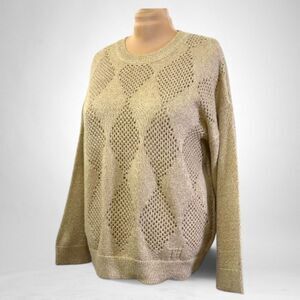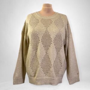 Tommy Hilfiger Plus Shine Open Stitch Argyle Crewneck Sweater, NWT! Size 3x