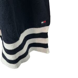 Get ready to add a touch of sparkle to your wardrobe with this navy blue and white striped Tommy Hilfiger sweater. It's soft, comfortable, and ready to wear. Make it yours today!