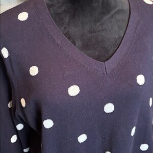 Adorable Tommy Hilfiger dark navy cotton V neck sweater. Perfect for cooler weather. Sweet white dots on the front and sleeves. Shirt is plain on back. Preloved condition.