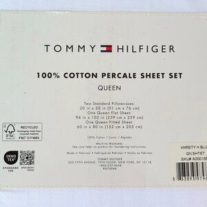 TOMMY HILFIGER Queen Size Crisp Percale Cotton Sheet Set - VARSITY H