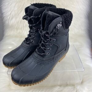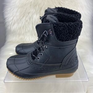 TOMMY HILFIGER RAINAH BLACK SYNTHETIC/FAUX FUR LACE UP WINTER-SNOW BOOTS SIZE 7M