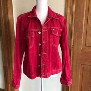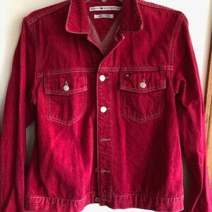 TOMMY HILFIGER Red Denim Trucker Jacket Large Vintage 2000
