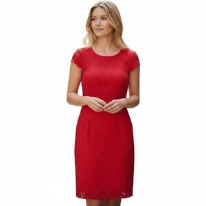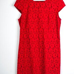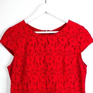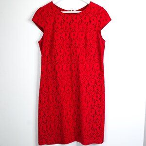 TOMMY HILFIGER Red Lace Cap Sleeve Shift Dress - Size 10