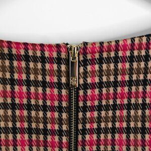 TOMMY HILFIGER Red Tan Olive Green Black Plaid Houndstooth Shift Dress - Size 4