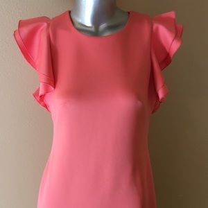 TOMMY HILFIGER | Ruffle Cap Sleeve Scuba Sheath Dress
